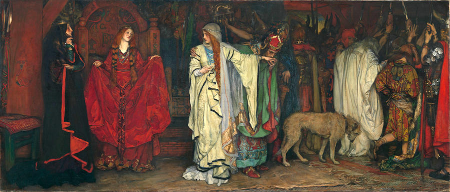 What’s most interesting to me, as a confirmed King Lear fan, is Thorp’s depiction of Lear’s daughters, and their place in Lear’s world. In Thorp’s version, there’s a fifteen-year age gap between Cordelia and her older sisters. Goneril and Regan, two years apart, bicker and compete. Their relationship with each other is marked by petty vanities and minor displays of spite. Attempts to assert themselves – borrowing their mother’s combs, refusing to obey orders, wearing foreign gowns that show their arms – are met with slaps and rage and coldness. There are pinches and scratches, dozens of minor cruelties. Regan marries first. Cornwall, a vain peacock, is offended by Lear’s refusal to let Regan leave the royal household: they must stay there, Lear says, in the house of Regan’s birth, rather than setting up court elsewhere. Goneril, who wants to become a nun, is married off to Albany against her will: he is an older man, gentle and calm. At their wedding-feast, she turned away from him and ‘laughed indecorously with companions, passing musicians, any other person’.